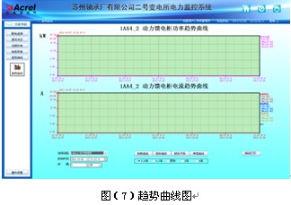 負荷趨勢曲線界面中可直觀的查看回路的負荷運行情況。查看實時和歷史趨勢曲線,點擊畫面相應按鈕或菜單項可以完成相應功能的切換;幫助用戶進線趨勢分析和故障追憶,具備曲線打印功能。為分析整個系統的運行狀況提供了直觀而方便的軟件支持。見圖(7)。