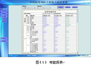 用電量報表功能,可選擇時間段進行查詢,支持任意時間段電度累計查詢,具備數(shù)據(jù)導出和報表打印等功能。為值班人員提供了精確可靠的電能報表。見圖(5)。