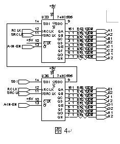 電流輸入模塊上還具有輸入通道狀態指示,使用雙色LED燈指示電池串列的斷線或正常工作狀態,雙色LED驅動使用串入并出移位寄存器74HC595兩顆級聯使用,其中U33驅動綠色LED管芯,U36驅動紅色管芯。(圖4)