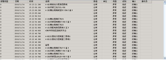 在配電系統發生運行故障時,會及時發出聲光報警提示用戶及時響應故障回路,同時自動記錄事件發生的時間地點,以被用戶查詢,追憶故障原因,記錄如下圖所示: