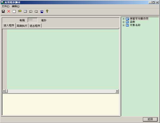 單擊[腳本]-[應(yīng)用]菜單,出現(xiàn)[圖1-1]所示“應(yīng)用程序腳本”窗口,在“進(jìn)入程序”選項(xiàng)卡中使用函數(shù)SQL Connect(ConnectID ,SourceDesc)可實(shí)現(xiàn)實(shí)時(shí)數(shù)據(jù)庫與關(guān)系型數(shù)據(jù)庫Access 2003的連接。