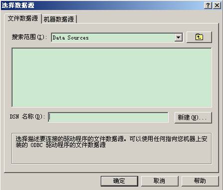 在“應(yīng)用程序腳本”窗口的工具欄中單擊“數(shù)據(jù)源選擇”圖標(biāo) ,彈出如 <圖1-2>所示的“選擇數(shù)據(jù)源”窗口,該窗口提供“文件數(shù)據(jù)源”和“機(jī)器數(shù)據(jù)源”兩個(gè)選項(xiàng)卡,前者為文件數(shù)據(jù)源,僅針對(duì)指定的數(shù)據(jù)庫文件創(chuàng)建數(shù)據(jù)源,如果有多個(gè)Access數(shù)據(jù)庫文件需要連接,就需要?jiǎng)?chuàng)建相應(yīng)數(shù)量的文件數(shù)據(jù)源;后一種為機(jī)器數(shù)據(jù)源,它可以在使用的計(jì)算機(jī)上創(chuàng)建一個(gè)面向所有Access數(shù)據(jù)庫的數(shù)據(jù)源。