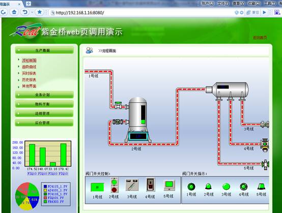 紫金橋實時數據庫提供“瘦客戶端”,可以在web頁面中嵌入具有授權簽名的ActiveX,實現在IE瀏覽器中瀏覽服務器中的畫面信息和數據信息。瀏覽靈活,并且與實際服務器中所有的內容一致。