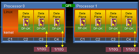 相比之下,Intel® DPDK采用了優(yōu)化的輪詢模式驅(qū)動(dòng)(PMD,Poll Mode Driver)代替默認(rèn)的以太網(wǎng)驅(qū)動(dòng)程序,從而可以不斷地接收數(shù)據(jù)包,避免軟件中斷,上下文切換和喚醒系統(tǒng)調(diào)用,從而大大的節(jié)省重要的CPU資源,并且降低了延遲。