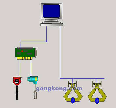 長城潤滑油公司北京公司是國內生產防凍液的著名企業,生產的防凍液供不應求。原來的生產處于粗略的測液位,取樣測試冰點,如果不合格再次添加原料二次調合,浪費時間和關鍵原料,攪拌系統采用的也是電機的機械式攪拌,企業每年都有巨大的經濟效益流失。針對這種情況公司對現有的生產線和攪拌系統進行了改造。采用紫金橋監控組態軟件加西門子plc及羅斯蒙特的質量流量計和智能氣脈沖反應攪拌器搭建了防凍液調合自動加料攪拌系統。整個系統的結構框圖如下: