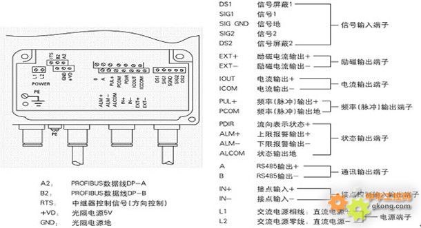 電磁流量計的正確接線 ①勵磁電纜可選用YZ中型橡套電纜,其長度與信號電纜一樣