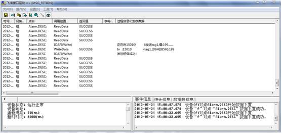 3. 運行:系統(tǒng)運行后,當關注的報警發(fā)送時,報警信息就會通過飛信驅動通知給相關人員,打開驅動的顯示窗口可以看到相關的信息,如下: