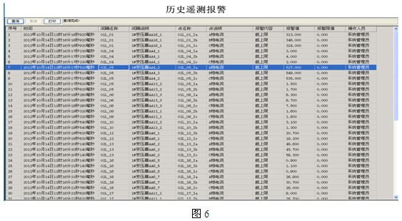 5.4 報警提示和查詢界面:電力監控系統實時和歷史報警界面,實時報警會彈出報警窗口提示,歷史報警通過查詢得出,如下圖5、6所示: