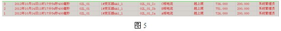 系統對所有采集到的數據都能實時的顯示,并保存到數據庫中,因此可以手動查詢每個回路的所有實時及歷史電參量數據,并以表格的形式展現給用戶,便于打印、保存。如圖3所示。