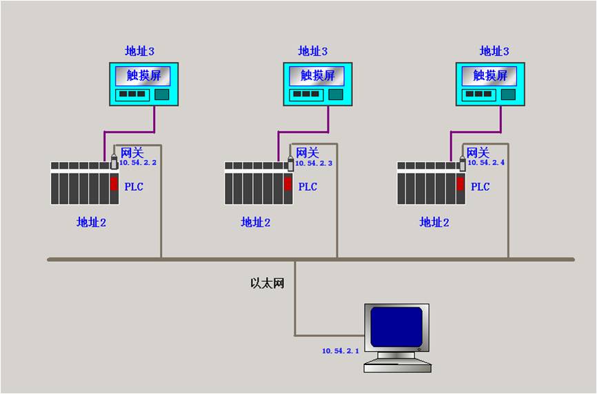 這里我們在每一臺PLC上增加了一個網關,把通訊介質從前的MPI線纜轉成了以太網。在計算機端裝好網關的驅動,這樣可以對各個網關的運行參數進行配置。把每臺PLC上連接的網關都設成不同的IP地址。注意要把計算機的IP地址設成和網關相同的網段。
