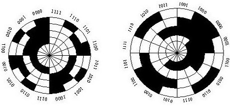 圖5四位二進制的碼盤 圖6四位二進制循環(huán)碼盤