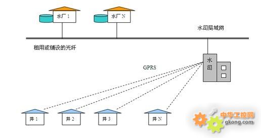 ---適用范圍--- 該系統適用于供水企業遠程控制管理自備水源井,水廠操作人員可以在水廠控制室遠程監測所轄水源井的工作情況,可以遠程控制水源井水泵的啟停;水司調度中心工作人員及公司主管領導可以遠程監測水源井的工作情況及水廠操作人員的操作情況。 該系統也適用于電廠、鋼廠等大型企業遠程控制管理自備水源井。 ---系統組成--- 該系統是水司生產調度管理系統的一個子系統,主要由水司調度中心、水廠監控中心、通信平臺、泵房測控設備組成。  ---通信平臺--- 水司調度中心、各水廠、各職能部門之間數據通信在局域網內完成;水廠與調度中心之間一般租用或鋪設光纖;水源井與水司調度中心之間采用GPRS無線通信。 ---水源井遠程測控終端的功能特點--- ◆ 采集水井水位、出口壓力、出水流量、閥門開度、安防報警等信息。 ◆ 采集水泵啟停狀態、運行時間、工作電流、工作電壓、電能等電參數。 ◆ 支持水泵啟動柜手動控制、自動控制、遠程控制水泵的啟停,控制模式可轉換。 ◆ 電流過大、缺相、水位過低、控制柜保護、井房停電、閑人進入等狀況發生時,立即上報告警信息。 ◆ 支持GPRS、短消息等無線通信方式。 ◆ 存儲、顯示、查詢井房監測數據及工作參數! 支持就地、遠程設備維護。 ---水廠監控中心主要功能--- ◆ 遠程監測所轄水源井的工作情況、安防情況,遠程控制所轄水源井水泵的啟停。 ◆ 在線監測水廠內加壓泵等設備的工作情況,控制加壓泵等設備的啟停。 ◆ 在線監測水廠內水池水位;進廠原水流量;出廠清水流量和壓力。 ◆ 在線監測出廠水的濁度、PH值、余氯等水質指標。 ◆ 在線監視水廠大門、制水車間等重要部位的圖像。 ◆ 生成各種報表,顯示各種數據曲線。