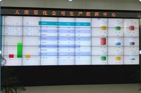大慶石化生產調度系統是以生產調度指揮中心大屏幕為中心的應用集成系統,實現了視頻監控、網絡信號、PC(VGA、DVI)等信號接入,實現大屏幕窗口自由分割,任意漫游功能。作為大慶石化公司調度指揮中樞,各個應用系統提供數據(如MES提供生產實時數據,計劃系統提供計劃數據),實現各信息應用系統在大屏幕的應用和展示功能,確保了生產指揮決策者動態掌握生產、經營等綜合信息(最新原油價格及趨勢、各種重要化工產品價格運行趨勢、重要領導指示、公司本年度的經營目標、現在的完成情況、原料進廠情況、產品產量、產品出廠、庫存情況、裝置運行情況、裝置運行動態、裝置檢修進度和裝置負荷情況等).