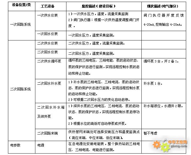 三、監控中心 3.1 公司調度監控中心 監控中心設立在供熱公司,充分利用其現有網絡資源及軟硬件設施,對其進行完善,并增設服務器系統設備、工作站系統設備,建立統一的供熱實時監控與管理系統。 3.1.1 系統組成 (1)中心機房信息匯集平臺系統 信息匯集平臺是系統數據通信、信息處理和服務的核心,主要由服務器系統、數據庫系統、通訊服務軟件、通信網絡系統等組成。 (2)工作站應用系統 應用系統是為工作人員提供相關信息的服務系統,是整個系統的建設的目的,包括軟件系統、顯示系統配置、計算機配置及網絡的建設。 3.1.2 應用軟件功能設計 (1)采用B/S和C/S兩種結構相結合:系統的設計是基于GPRS數據傳輸技術和網絡技術之上的,軟件開發采用B/S和C/S兩種結構相結合的方式設計,同時支持Web訪問、客戶端軟件訪問模式設計,方便不同職能部門的工作人員工作。 數據匯集處理和前端控制程序等應用系統采用C/S體系結構。監控調度人員使用客戶端軟件訪問系統完成所有操作,采用C/S體系結構。其他非監控類人員使用瀏覽器訪問系統完成所有操作,采用B/S體系結構。 (2)實現對28個換熱站設備運行情況、相關運行參數的實時監控,以及重要管網測點溫度、壓力數據的在線監測。 (3)實現對全部數據的分析、存儲、預警與報表統計、曲線分析輸出功能。 (4)實現對測點各種機電設備設施情況、維護情況規范化建檔管理。 (5)實現系統權限管理、安全管理、日志記錄管理功能。 (6)電子地圖可視化界面顯示。 3.2 換熱站監控中心 換熱站監控中心設立泵站值班室,建立簡易中心,為信息匯集平臺系統、應用系統提供軟硬件技術支持。 換熱站監控中心應用軟件功能設計如下: (1)實現對無人值守換熱站設備運行情況、相關運行參數的實時監控。 (2)實現對全部數據的分析、存儲、預警與報表統計、曲線分析輸出功能。 (3)實現對測點各種機電設備設施情況、維護情況規范化建檔管理。 (4)實現系統權限管理、安全管理、日志記錄管理功能。 四、監控終端系統 4.1 監控終端系統構成及功能框圖