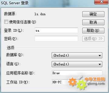正常情況下,在對話框中輸入ID和密碼就可以,但如果需要定制數據庫等其他信息,需要點擊  按鈕,如下圖所示: