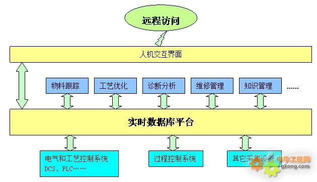 在本系統(tǒng)中,實(shí)時(shí)數(shù)據(jù)庫的主要功能是發(fā)揮其作為一種高效、穩(wěn)健的信息橋梁的作用,為設(shè)備診斷和在線工藝優(yōu)化等上層應(yīng)用程序和底層控制設(shè)備之間鋪設(shè)一條快速、及時(shí)、準(zhǔn)確地雙向數(shù)據(jù)通路,提供一個(gè)完整、穩(wěn)定、開放性好的數(shù)據(jù)支持平臺(tái)。