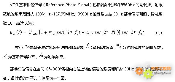 甚高頻全向信標(biāo)的基本功用是為機載VOR接收機提供一個復(fù)雜的無線電信號,經(jīng)機載VOR接收機解調(diào)后,測出地面甚高頻全向信標(biāo)臺相對于飛機的磁方位即VOR方位[5]。機載接收機接收到的空間合成VOR信號包括基準(zhǔn)相位信號和可變相位信號,通過對兩種信號相位的比較來實現(xiàn)定向。VOR工作頻率范圍108MHz~117.95MHz,波道間隔0.05MHz。