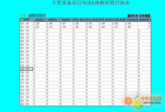 紫金橋軟件還實(shí)現(xiàn)各個(gè)電機(jī)電流日?qǐng)?bào)表、多個(gè)測(cè)點(diǎn)溫度日?qǐng)?bào)表的查詢和打印。這一功能是功過紫金橋軟件自帶的自由報(bào)表組件實(shí)現(xiàn)的,自由報(bào)表通過對(duì)生產(chǎn)數(shù)據(jù)的加工,可以形成各類報(bào)表,包括實(shí)時(shí)數(shù)據(jù)報(bào)表、班報(bào)、日?qǐng)?bào)、月報(bào)、年報(bào)等數(shù)據(jù)。也可以定制各種歷史報(bào)表,如通過查詢時(shí)間等查詢生成各類報(bào)表。