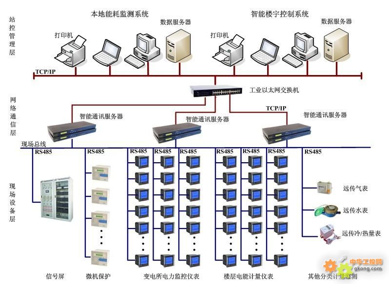網(wǎng)絡(luò)通訊層是由通訊服務(wù)器、接口轉(zhuǎn)換器及總線網(wǎng)絡(luò)等組成。該層是數(shù)據(jù)信息交換的橋梁。