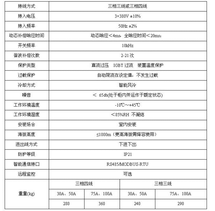 4、ANAPF低壓有源濾波器在LED顯示屏中的應用 某廣場大型戶外LED顯示屏,該顯示屏供電系統(tǒng)有850個30OW的開關電源分布式并聯(lián)運行,總功率共計250kw。開關電源是典型的諧波源,在工作時具有電流諧波畸變率高、諧波含量大、諧波頻譜寬、設備為容性負載、功率因數低等用電特性。當大量的開關電源集中使用時會導致中線電流過高,功率因數低,電流諧波畸變率高等現象,從而影響了LED顯示屏正常工作。 4.1諧波治理方案 基于該現場的特點,并聯(lián)安裝一臺ANAPF型電力有源濾波器,設備參數如下: