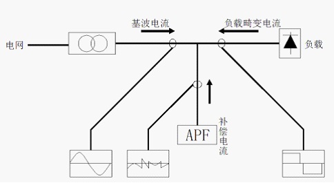 近年來,許多廠礦企業(yè)大量使用可控硅整流和換流設(shè)備、電弧爐、中頻爐等諧波干擾源負(fù)荷設(shè)備,這些設(shè)備在吸收大量無功功率、降低用戶的功率因數(shù)的同時,也使諧波問題日趨嚴(yán)重。根據(jù)電力工業(yè)電能質(zhì)量方面的標(biāo)準(zhǔn)及管理規(guī)定,各地供電部門出臺了相應(yīng)的諧波限制準(zhǔn)則及措施,并對諧波污染嚴(yán)重的企事業(yè)單位進(jìn)行考核和治理。因此,濾除諧波、提高功率因數(shù)、延長設(shè)備壽命是這類企業(yè)節(jié)能降耗、提高生產(chǎn)效益和產(chǎn)品質(zhì)量的當(dāng)務(wù)之急。 傳統(tǒng)的諧波抑制和無功補(bǔ)償方法是采用由電感和電容構(gòu)成的無源濾波裝置,該裝置與需補(bǔ)償?shù)姆蔷性負(fù)載并聯(lián),在為諧波提供低阻通路的同時,也為負(fù)載提供了所需的無功功率。雖然無源濾波裝置具有簡單、方便的優(yōu)點,但它也存在許多缺點。 有源電力濾波(active power filter,APF)裝置不僅可減小占地面積,而且可有效解決無源濾波裝置存在的問題。有源濾波與無源濾波存在著本質(zhì)區(qū)別,它是根據(jù)動態(tài)補(bǔ)償諧波的原理,應(yīng)用現(xiàn)代電力電子器件和計算機(jī)技術(shù),快速跟蹤諧波產(chǎn)生的諧波大小和特性,由裝置發(fā)出相應(yīng)頻率的反向電流,從而達(dá)到同時濾除多種成分諧波的目的。它一般由電子電力變流器構(gòu)成,具有半導(dǎo)體功率變流器的高可控性和快速響應(yīng)性。 1、ANAPF低壓有源濾波器在工廠中的應(yīng)用案例 1.1項目簡介 秦皇島某電子有限公司配電系統(tǒng)中接有5套整流變壓器,主要給10個熔化中頻電爐供電。該類設(shè)備采用12脈波晶閘管整流方式,在生產(chǎn)過程中產(chǎn)生嚴(yán)重的非正弦畸變和大量高次諧波,對自身配電系統(tǒng)和公共電網(wǎng)造成嚴(yán)重干擾。同時,由于該非線性負(fù)載為感性的,使自身配電系統(tǒng)的功率因數(shù)惡化,10kV進(jìn)線側(cè)11次和13次諧波電流超出國家標(biāo)準(zhǔn)要求,進(jìn)而大大影響了配電系統(tǒng)和公共電網(wǎng)的電能質(zhì)量。如果不進(jìn)行諧波治理,不僅對該公司自身配電系統(tǒng)造成危害,而且會危及公共電網(wǎng)安全。 1.2 ANAPF濾波裝置原理 ANAPF系列有源電力濾波裝置,以并聯(lián)方式接入電網(wǎng),通過實時檢測負(fù)載的諧波和無功分量,采用PWM變流技術(shù),從變流器中產(chǎn)生一個和當(dāng)前諧波分量和無功分量對應(yīng)的反向分量并實時注入電力系統(tǒng),從而實現(xiàn)諧波治理和無功補(bǔ)償。 原理如下圖: