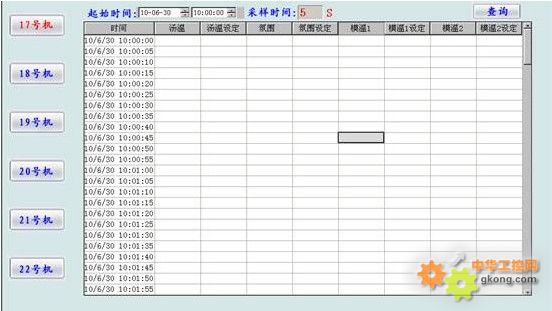 數據查詢界面主要功能是在行程開關動作的時候把相關的溫度值和設定值保存在ACCESS文件里,然后通過自由報表顯示出來。選定查詢的起始時間和結束時間就可以查詢出時間范圍內保存的數據。
