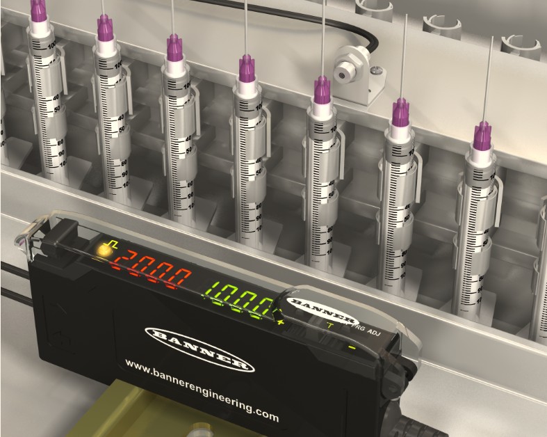 DF-G1專家式雙數顯光纖放大器的操作界面直觀友好,從而幫助操作人員減少安裝調試時間。同時顯示當前信號值和閾值,簡化了操作過程。DF-G1傳感器可以輕而易舉地應用于小物體 檢測。例如:狹小空間內的針筒有無檢測??梢苑浅7奖愕脑O定DF-G1傳感器,從而適用于小部件計數。