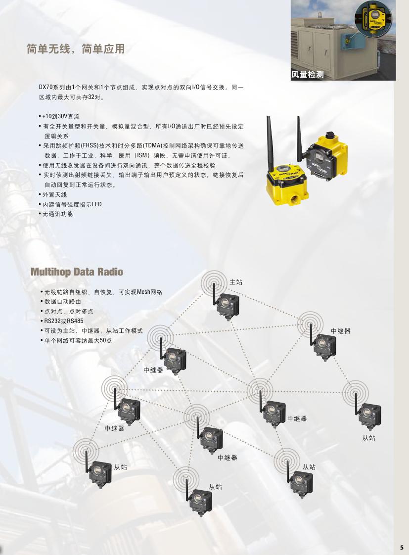 超遠距離無線傳感,安全可靠無處不在。電控柜中鋪設了很多線纜,每次要重復相同的動作和口令去逐一確認接線正確與否。難道我們必須這樣嗎?不,現在您有了新選擇:美國邦納考慮到現場需求,開發出了基于2.4GHz工作頻率的SureCross工業無線網絡系統,為現場與控制室之間搭建起一座信息橋梁,讓您能夠對廣袤的地區和人員無法接近的區域實現全面監測。