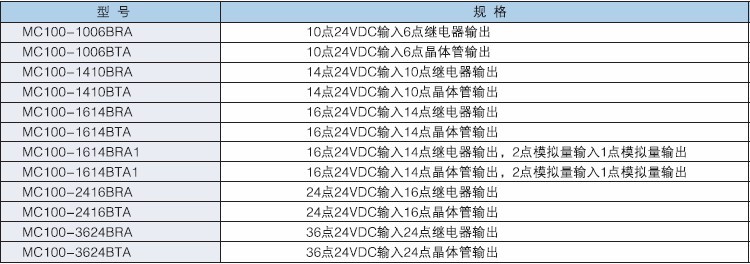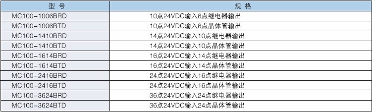 | I/O | 數字I/O點 | 16輸入/16輸出 | 10輸入/6輸出、14輸入/10輸出16輸入/14輸出、24輸入/16輸出、36輸入/24輸出、16輸入/14輸出/2模擬量輸入/1模擬量輸出 | 10輸入/6輸出、14輸入/10輸出、16輸入/14輸出、24輸入/16輸出、36輸入/24輸出 | 10輸入/6輸出、14輸入/10輸出、20輸入/12輸出、24輸入/16輸出、32輸入/32輸出、40輸入/40輸出? | |