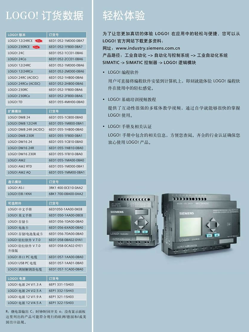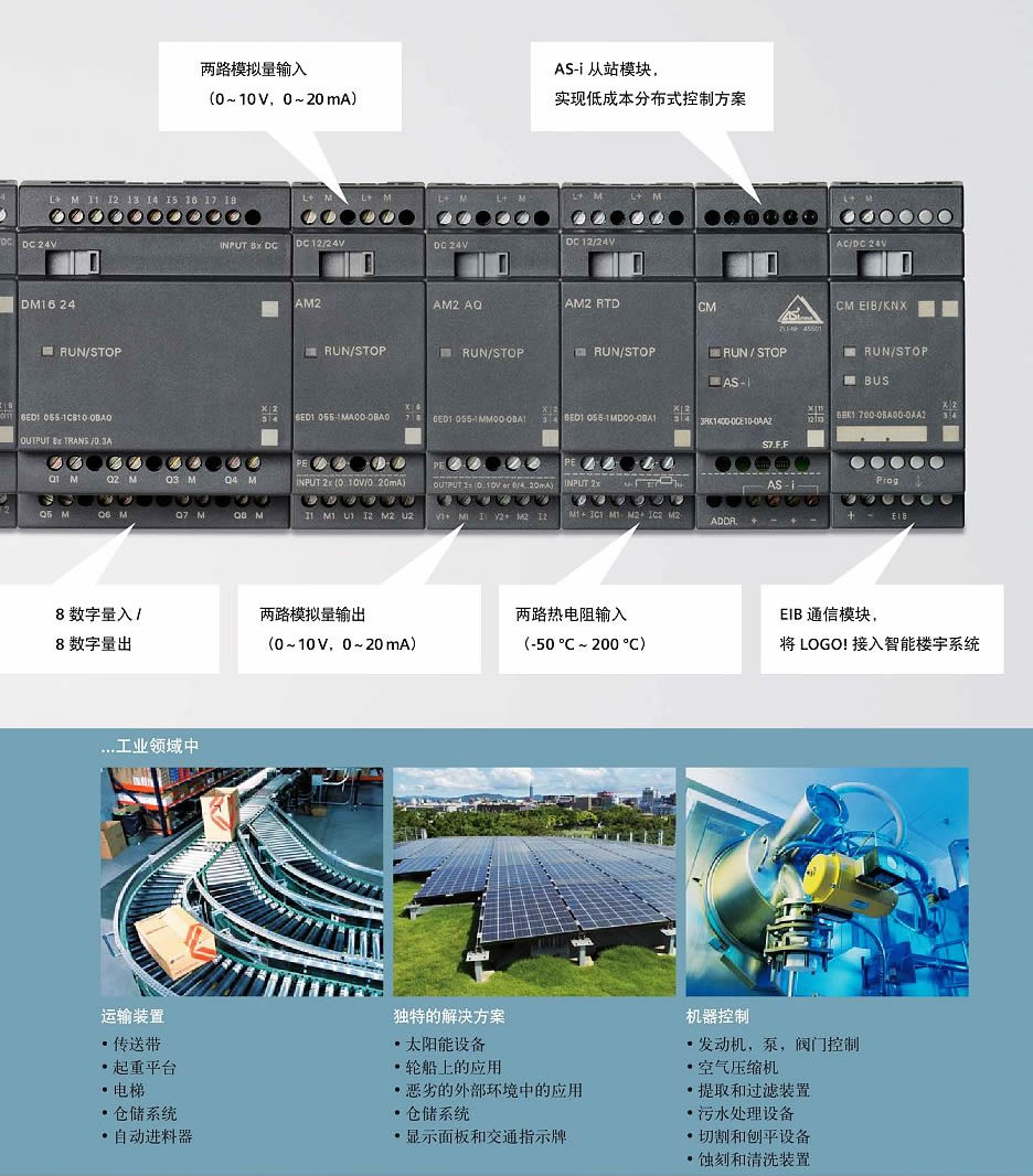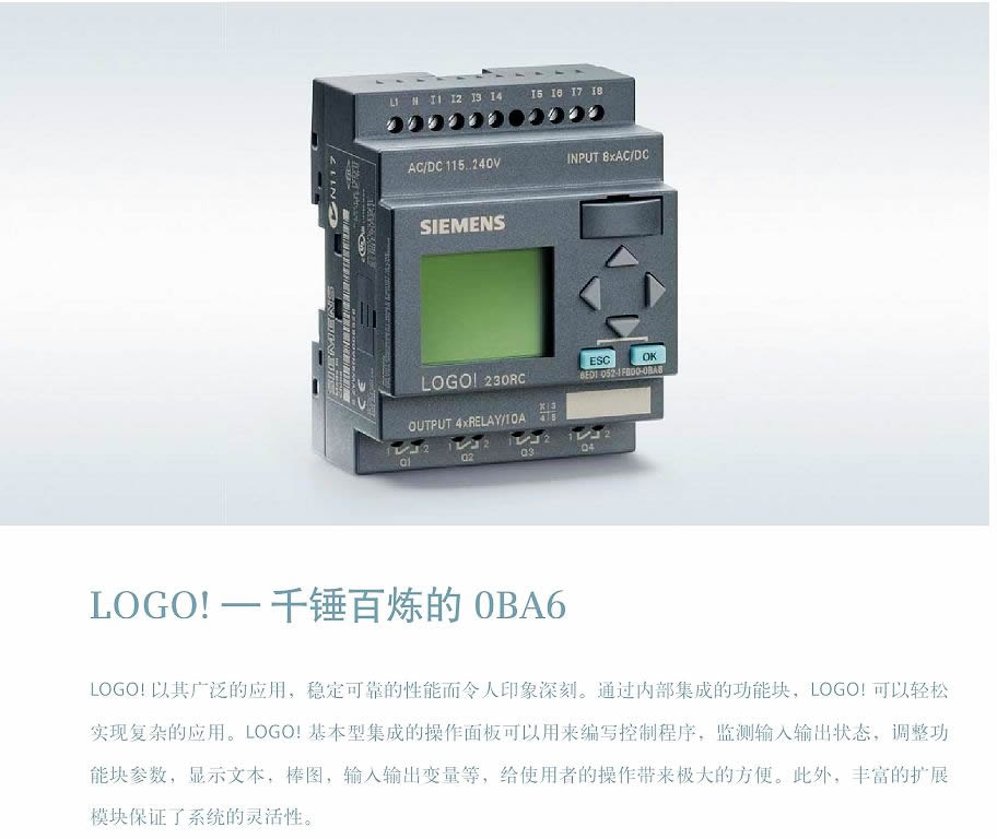 LOGO! 智能邏輯控制器填補了繼電器與PLC之間的技術空間,已發展成為模塊化的標準組件產品。通過集成的8種基本功能和30多種特殊功能,LOGO! 可以代替數以百計的開關設備,從時間繼電器一直到接觸器。LOGO! 有很好的抗振性和很強的電磁兼容性(EMC),完全符合工業標準,能夠應用于各種氣候條件。
